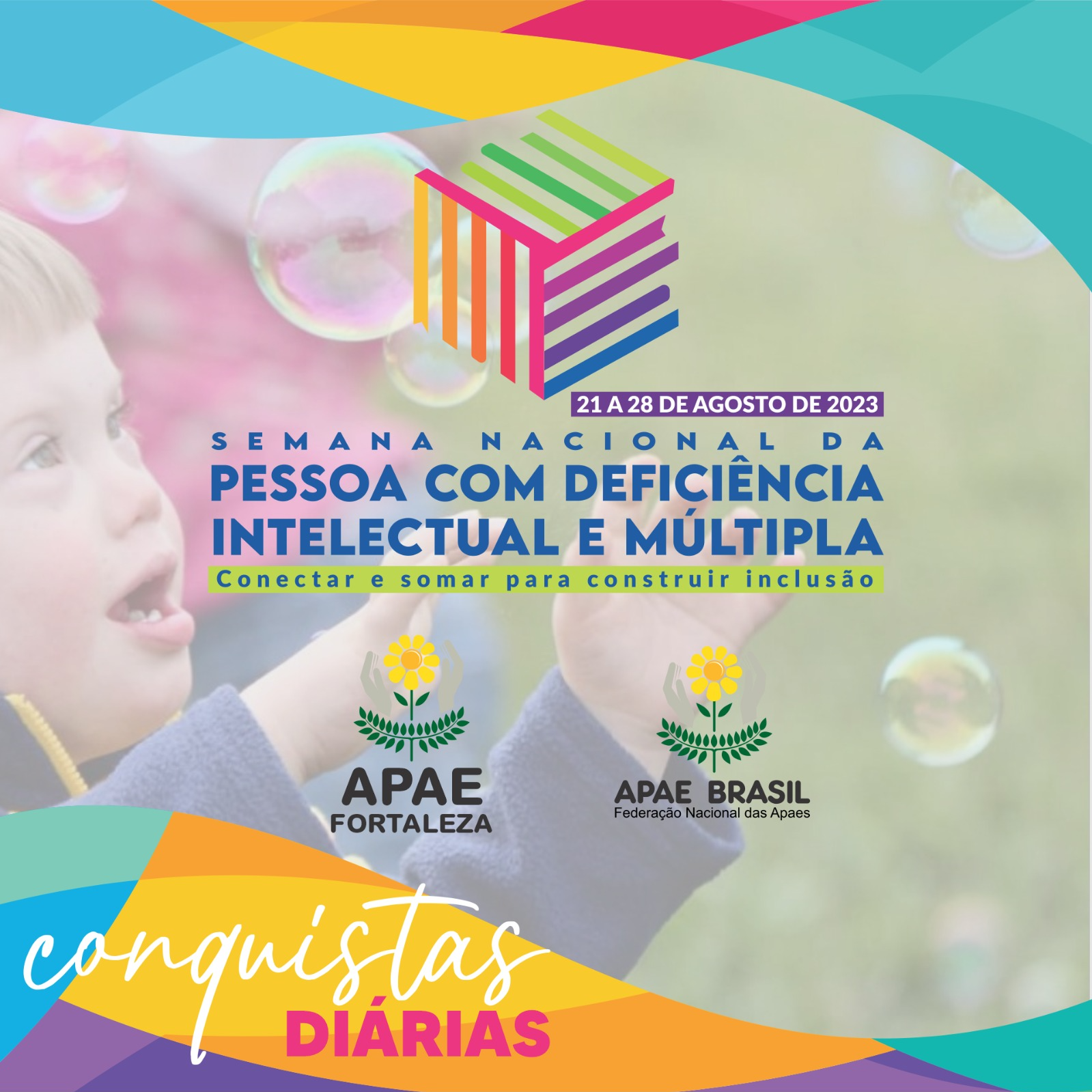 Neste ano, a campanha – desenvolvida pela Federação Nacional das Apaes (Fenapaes) desde 1963, entre 21 e 28 de agosto, e introduzida no calendário nacional pela Lei nº 13.585/2017 –, terá como tema “Conectar e somar para construir inclusão”.